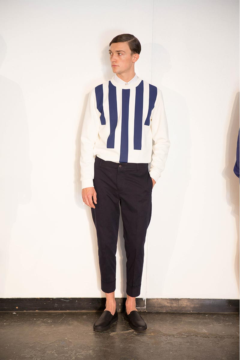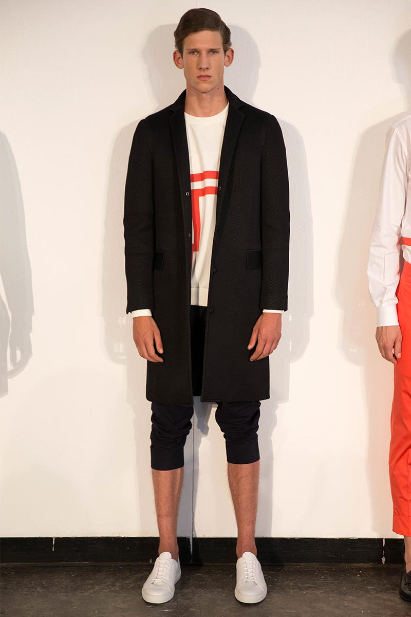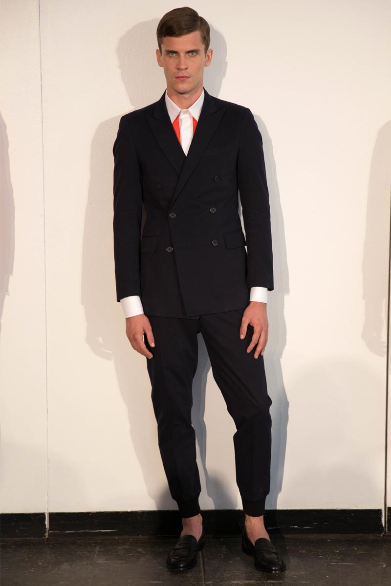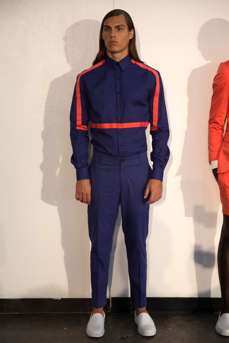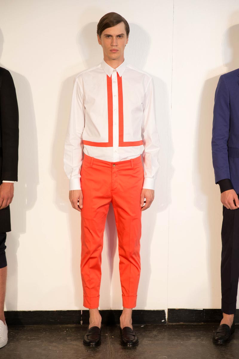El diseñador como nos tiene acostumbrados sigue alejandose de las formalidades y saliendose de lo común esta vez con lineas, cuadrados, asimetrÃas y figuras gráficas que enmarcaron su vertiente minimalista que esta vez explotaba en los pulcros monocromas con la inyección de color en las lineas gráficas donde el naranja tuvo un gran protagonismo.