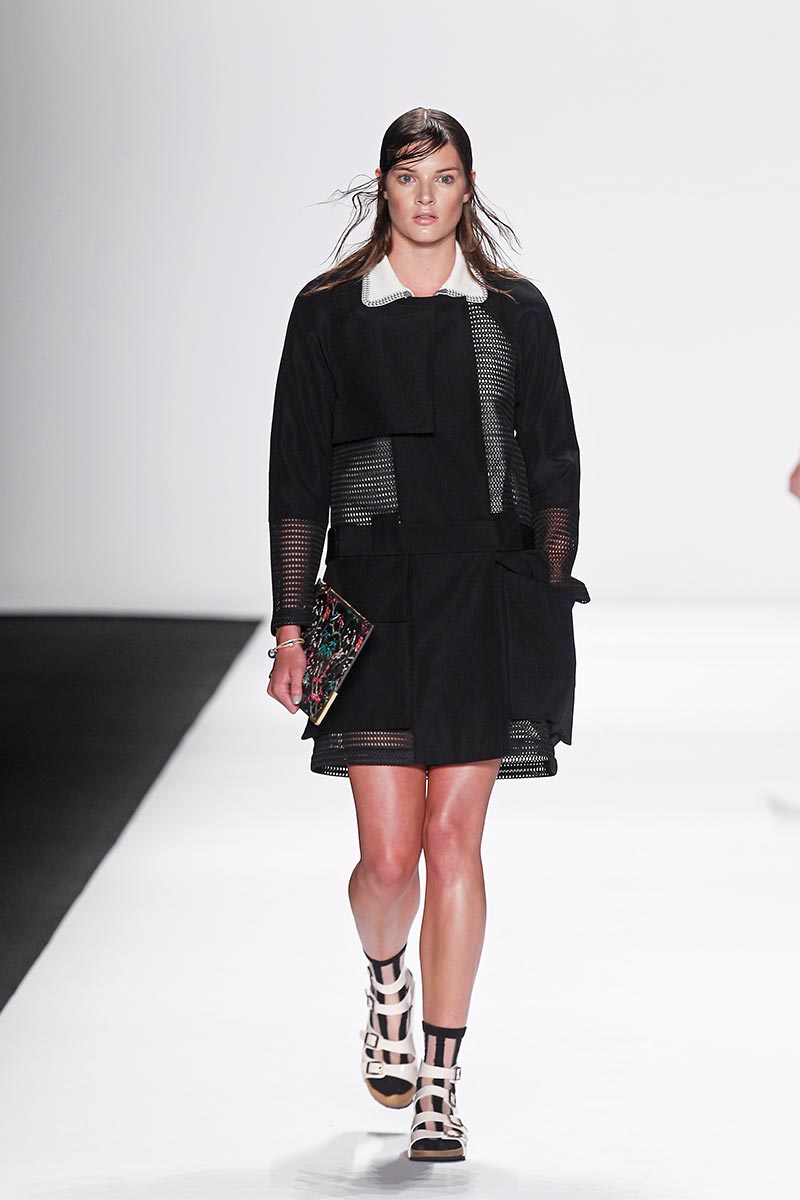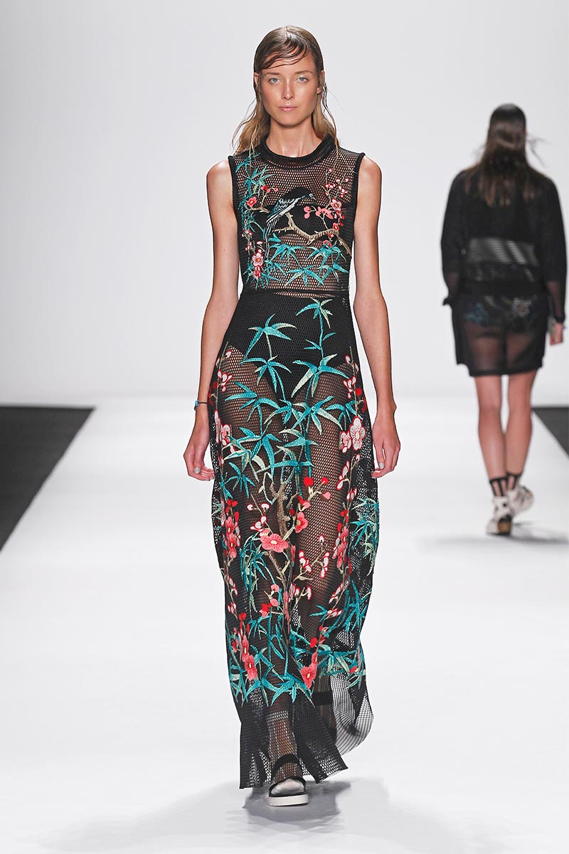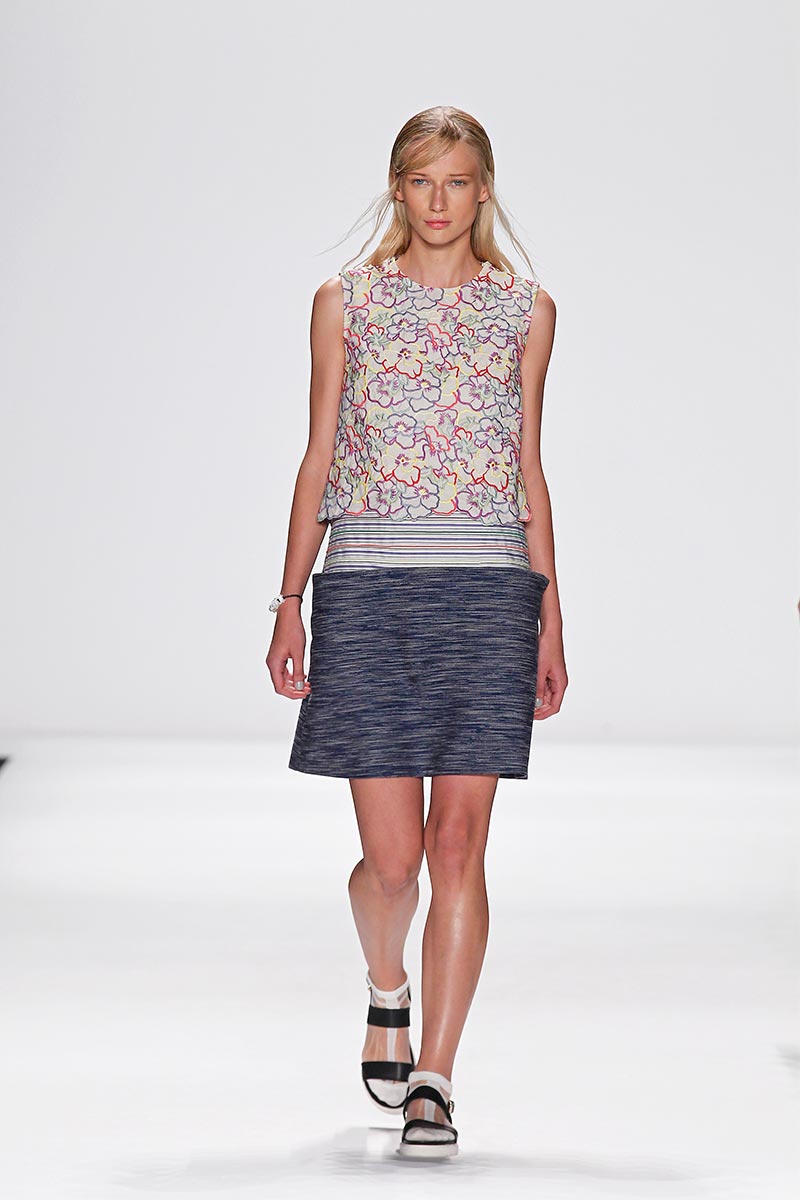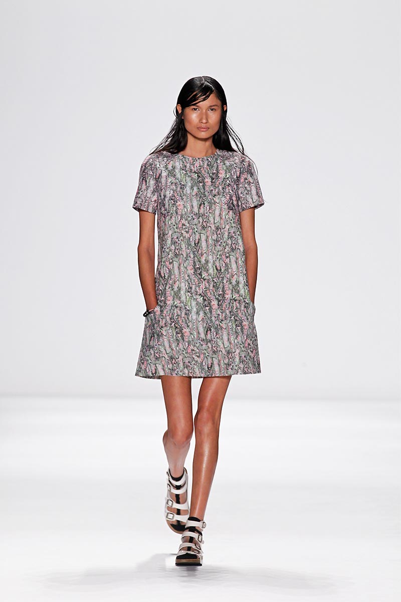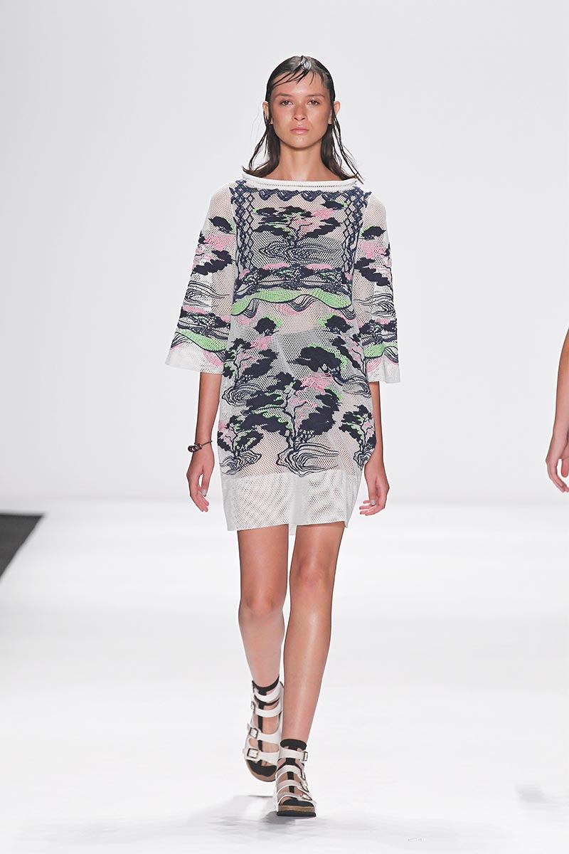 AM: we see a lot of bright colors for spring in a-line silhouettes. what can you tell us about that mesh-type fabric we see in a lot of the looks?