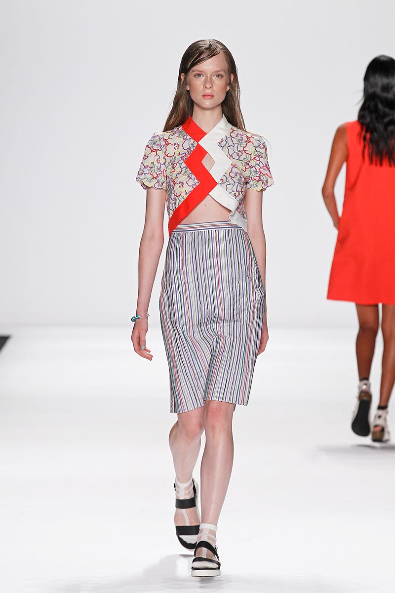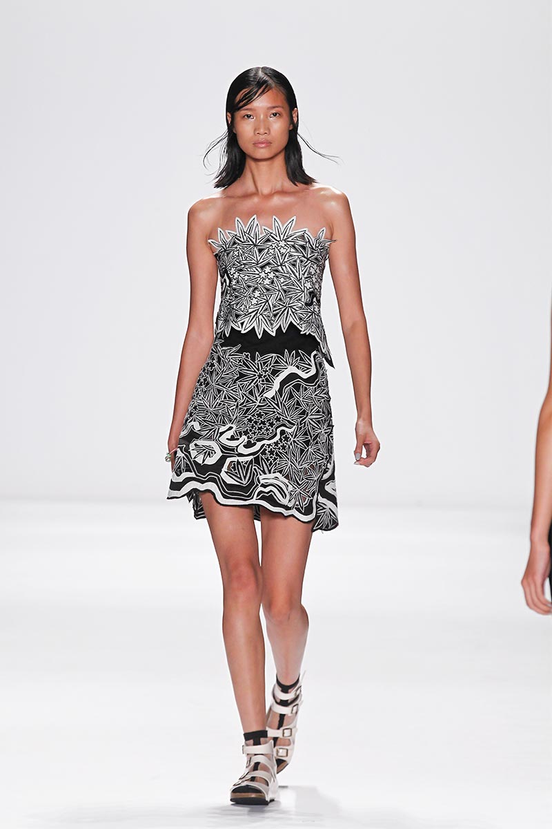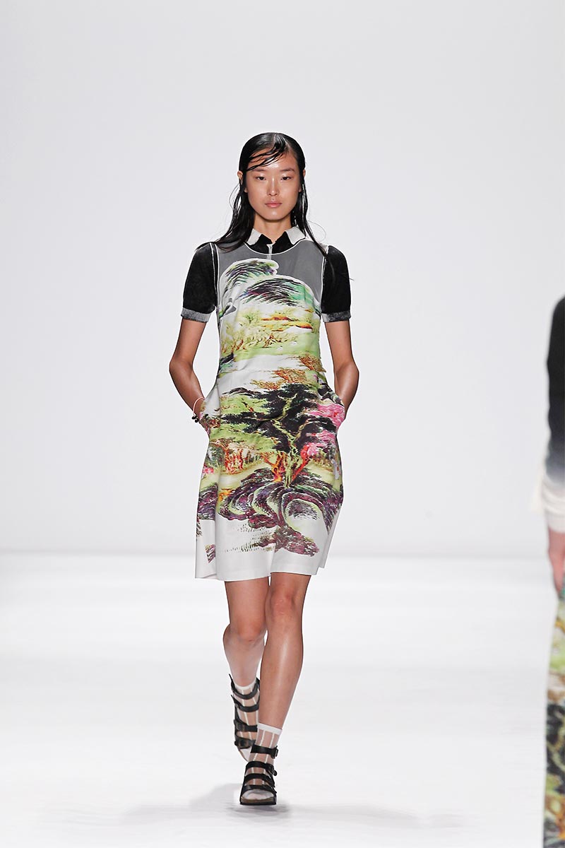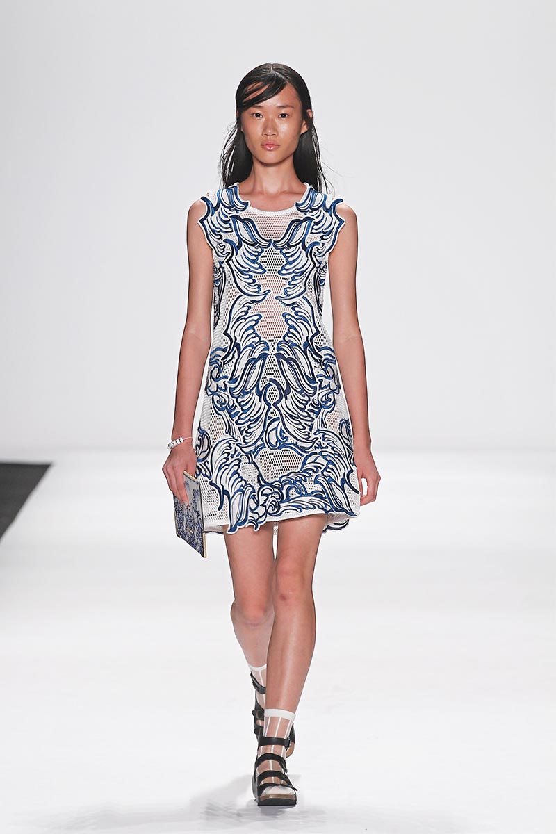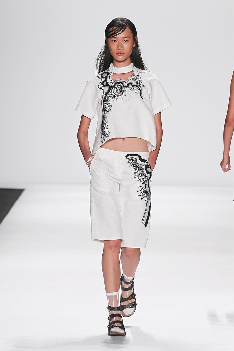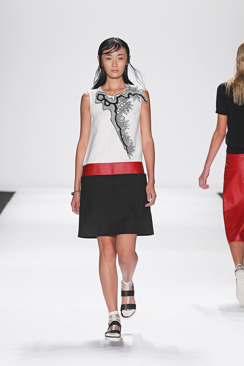 Two words easily summarize Vivienne Tam's eponymous label: heritage and technology. Both taking strong focal points across her collections, she draws inspiration through the diverse historic references found in the orient, while partnering with companies that benefit the industry through technological advances. Yet Tam's collections feel familiar: an east meets west appreciation that is summed to a tech debut of any sort. Changeably, her spring 2015 was all about the clothes -it seemed- or perhaps it felt unaccustomed, fresh, untried even, that the audience was drawn solely and unequivocally by it.