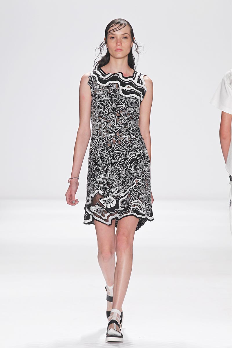 For spring/summer 2015, an opted palette of bright tones clashed with hints of pitch high hues, peaked at Tam’s runway, were the playfulness of tones worked marvellously towards the utilisation of rough-like fabrics and seaming techniques such as embroidering and tonal-stitching laser cut appliqués.